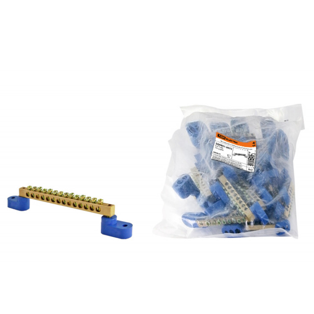 Шина "N" нулевая 6х9мм на двух угл. изоляторах 14 групп SQ0801-0035, Блок клеммный и нулевая шина