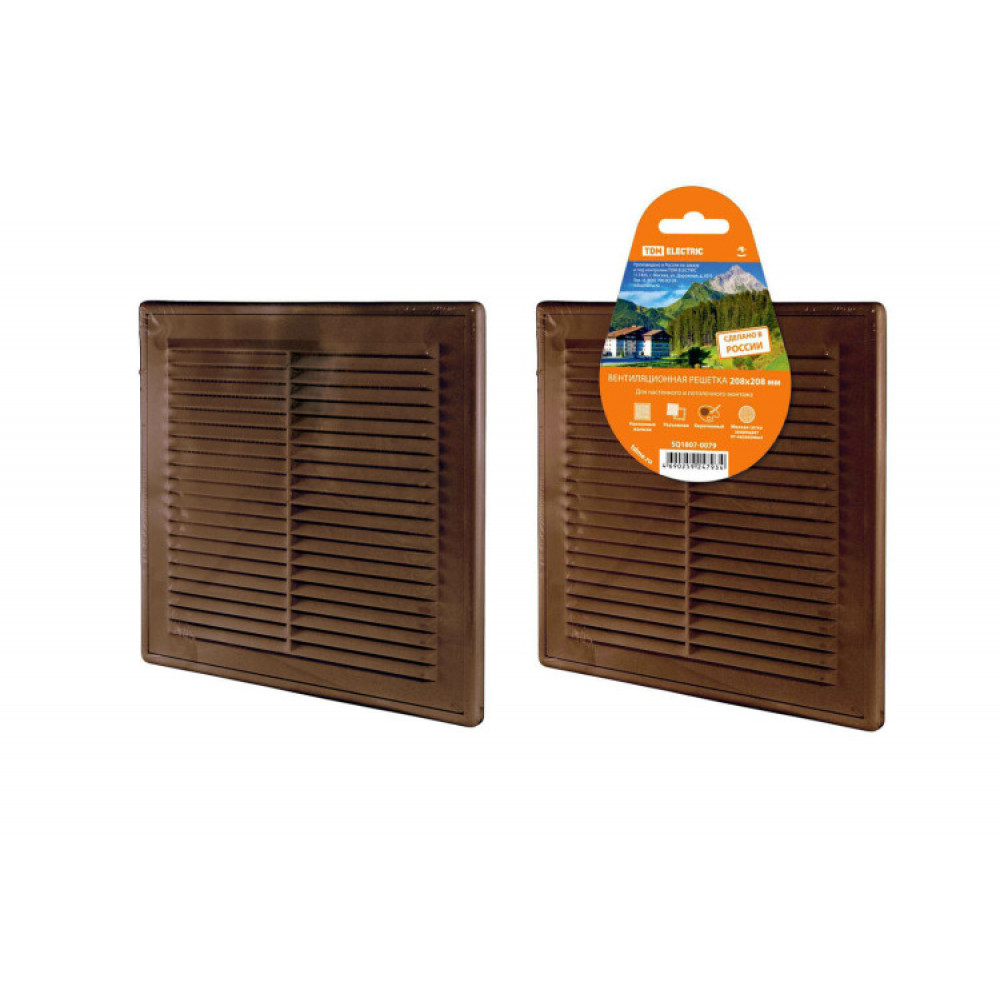 Решетка разъемная с москитной сеткой, 208х208 "ЭКО" (коричн.) SQ1807-0079, Система вентиляционная