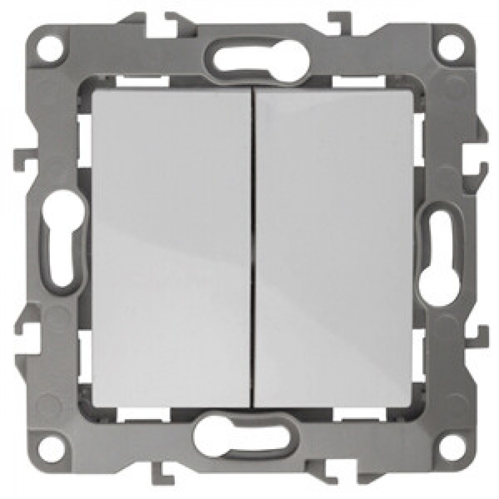 12-1004-01 Выключатель двойной, 10АХ-250В, IP20, без м.лапок, 2, белый (10/100/3000) Б0014651, Выключатель и переключатель скрытого монтажа