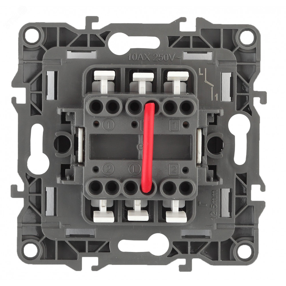 ← 12-1004-01 Выключатель двойной, 10АХ-250В, IP20, без м.лапок, 2, белый (10/100/3000) Б0014651