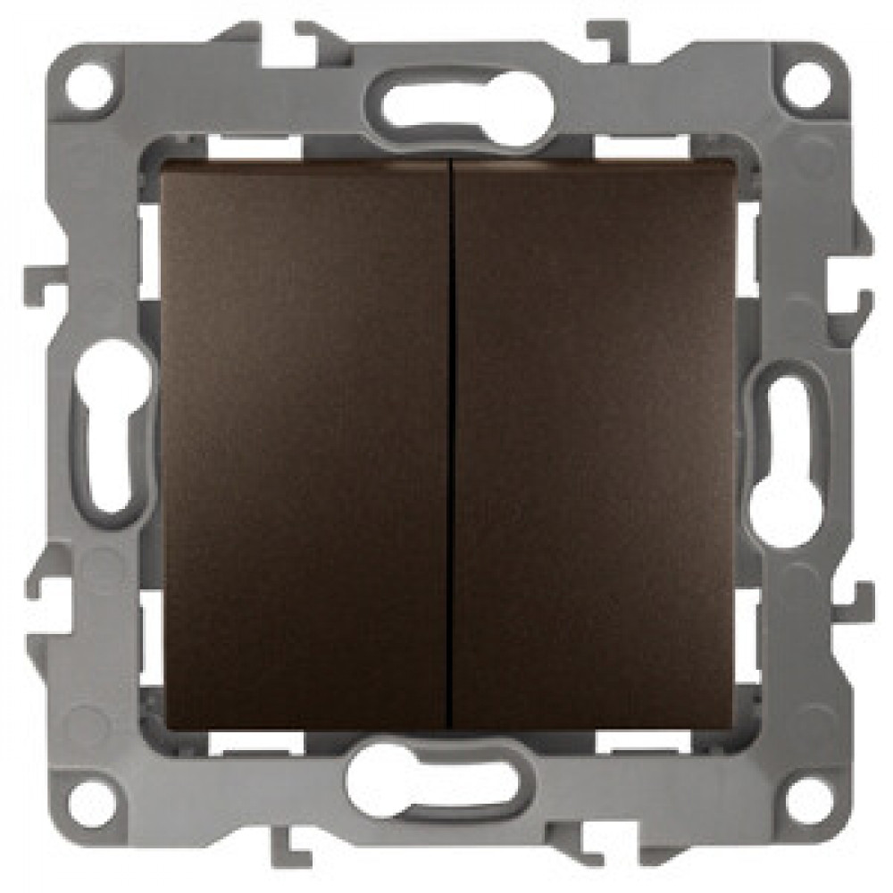 12-1004-13 Выключатель двойной, 10АХ-250В, IP20, без м.лапок, 2, бронза (10/100/2500) Б0019312, Выключатель и переключатель скрытого монтажа
