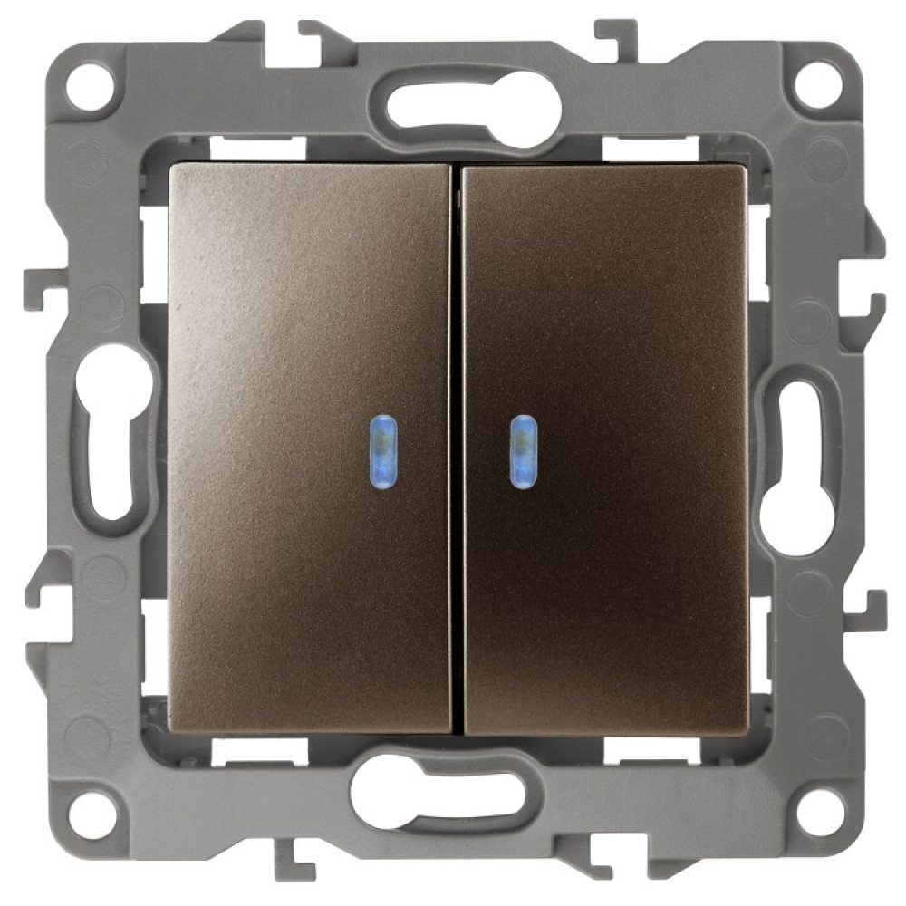 12-1105-13 Выключатель двойной с подсветкой, 10АХ-250В, IP20, 2, бронза (10/100/3200) Б0019292, Выключатель и переключатель скрытого монтажа