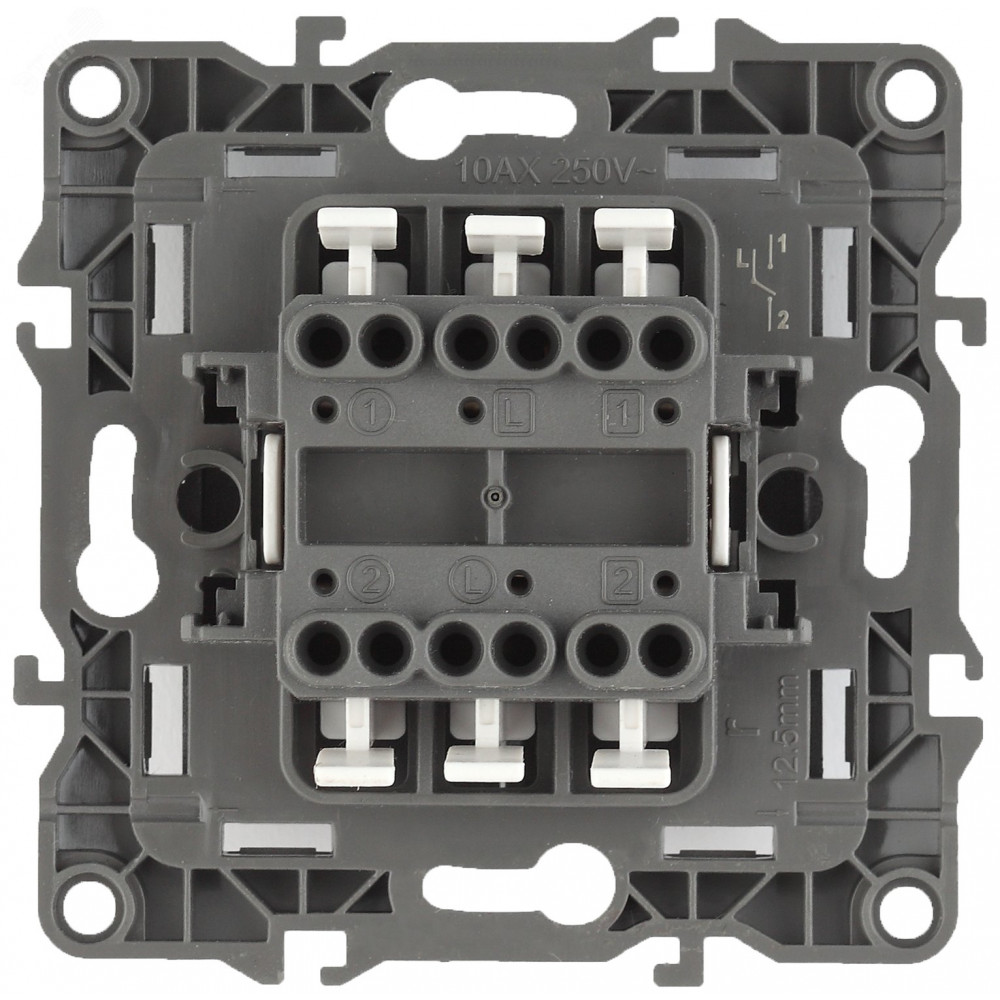 12-1106-01 Переключатель двойной, 10АХ-250В, IP20, 2, белый (10/100/3200) Б0014663, Выключатель и переключатель скрытого монтажа