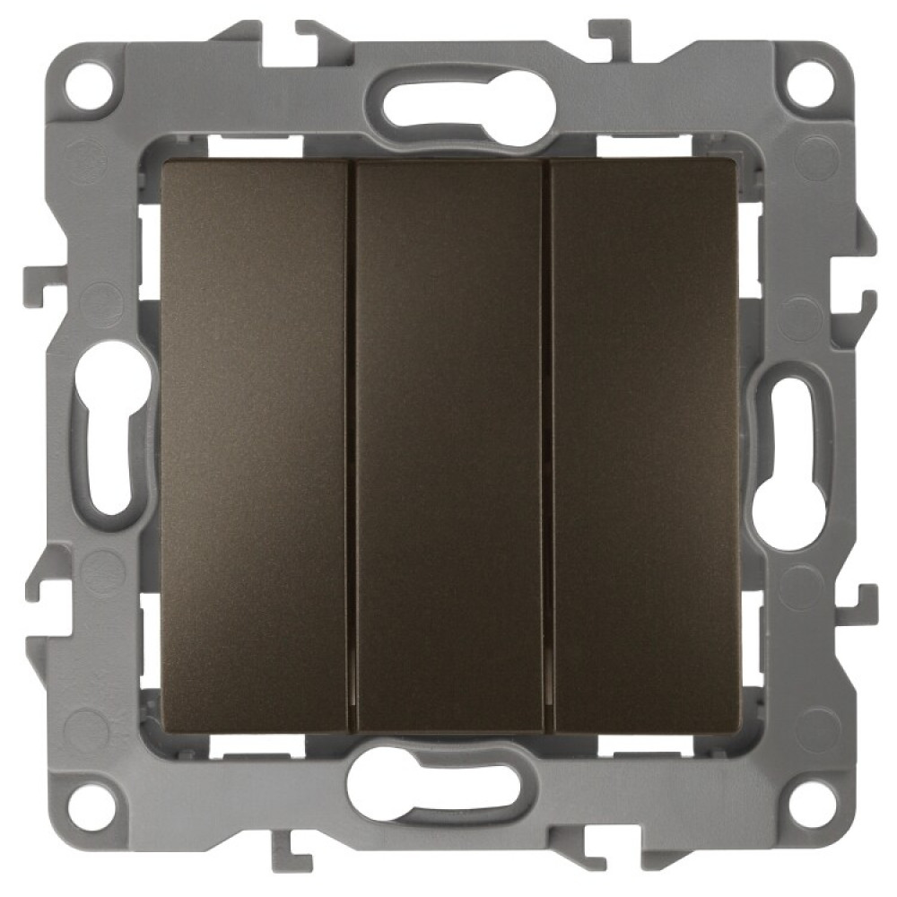 12-1107-13 Выключатель тройной, 10АХ-250В, IP20, 2, бронза (10/100/2500) Б0019300, Выключатель и переключатель скрытого монтажа