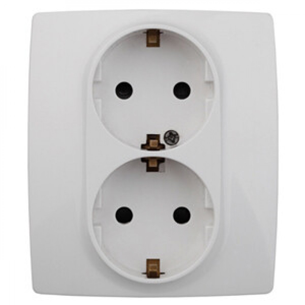 Описание 12-2104-01 Розетка 2X2P+E Schuko со шторками, 16A-250В, IP20, 2, белый (6/60/1680) Б0014699