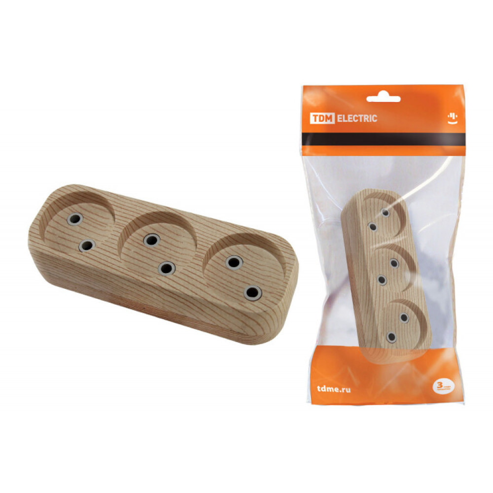 Колодка розеточная 3 гнезда 2П б/з 10А 250В "Эко" (сосна) SQ1806-0047, Удлинитель, сетевой фильтр