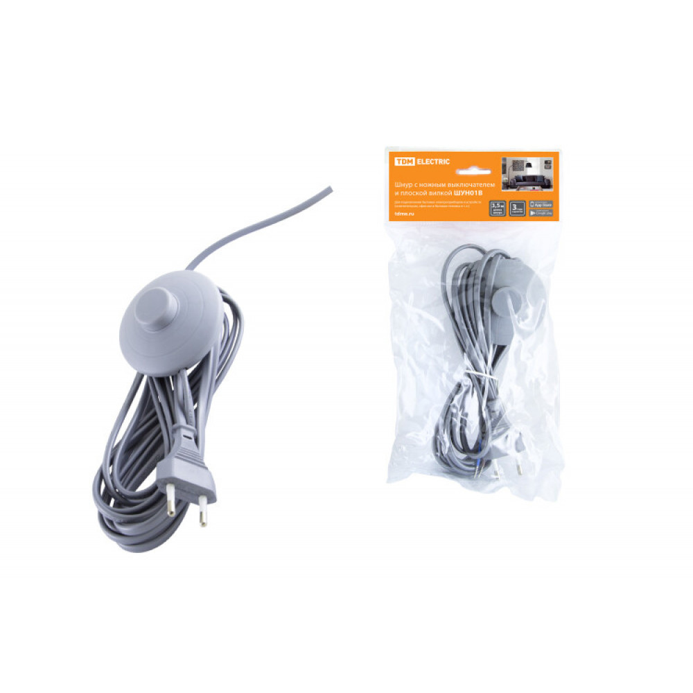 Описание Шнур с ножным выключателем и плоской вилкой ШУН01В ШВВП 2х0,75мм2 3,5м. серебр. металлик SQ1305-0065