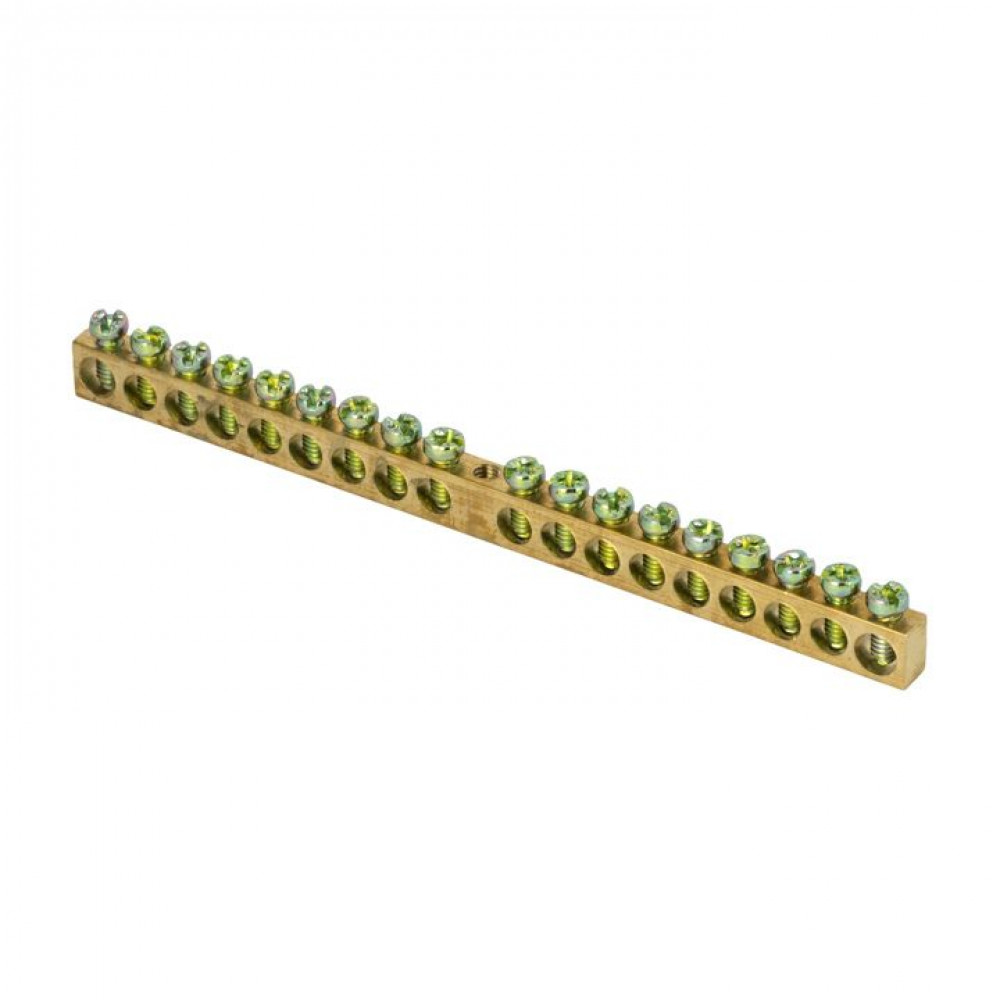 Шина PEN "ноль-земля" (6х9мм) 18 отверстий латунь крепеж по центру PROxima sn0-63-18, Блок клеммный и нулевая шина