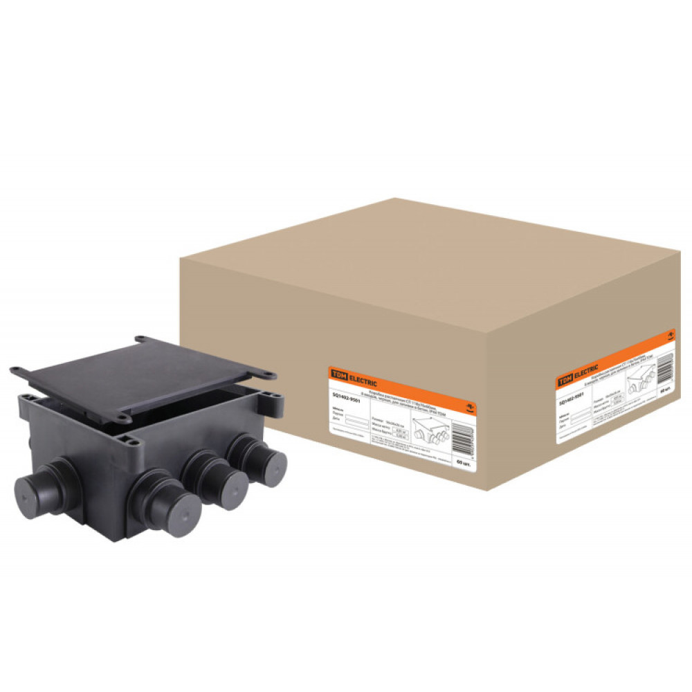 Коробка распаячная СП 118х76х60мм, 8 вводов, черная, для заливки в бетон, IP44 SQ1402-9501, Коробка распределительная