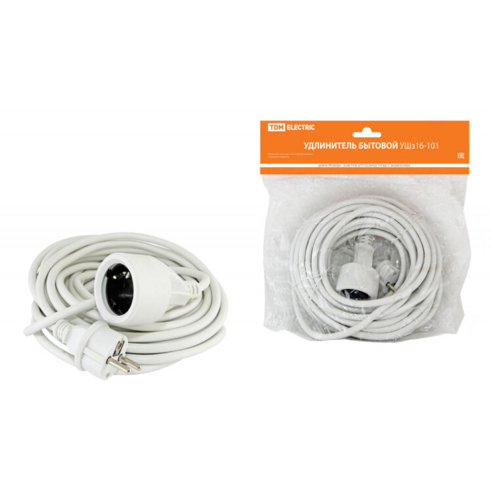 Удлинитель-шнур силовой УШз16-101 штепс. гнездо с/з, 30м ПВС 3х1,5 нМ SQ1302-0103, Удлинитель, сетевой фильтр