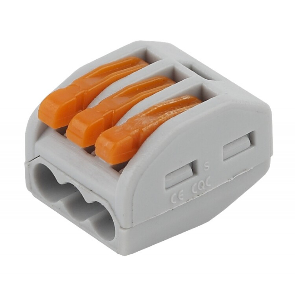 Клемма соединительная на 3 контакта, рычажный прижим проводов сечением 0.08-4мм2