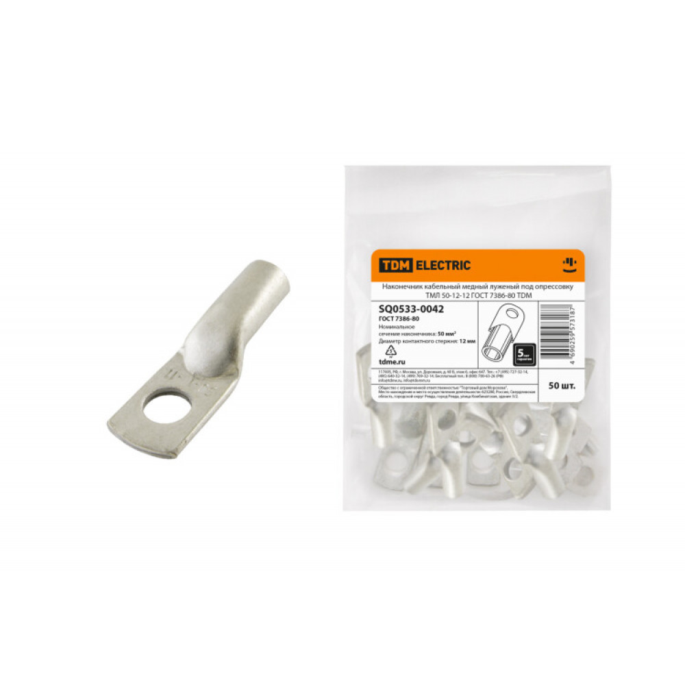 Доставка Наконечник медный луженый ТМЛ 50-12-12 ГОСТ 7386-80 SQ0533-0042