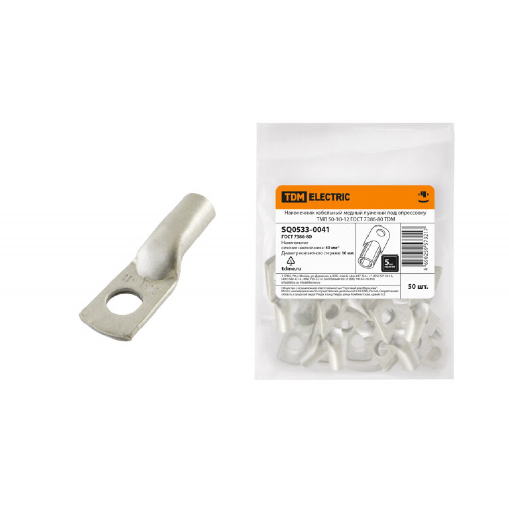Описание Наконечник медный луженый ТМЛ 50-10-12 ГОСТ 7386-80 SQ0533-0041