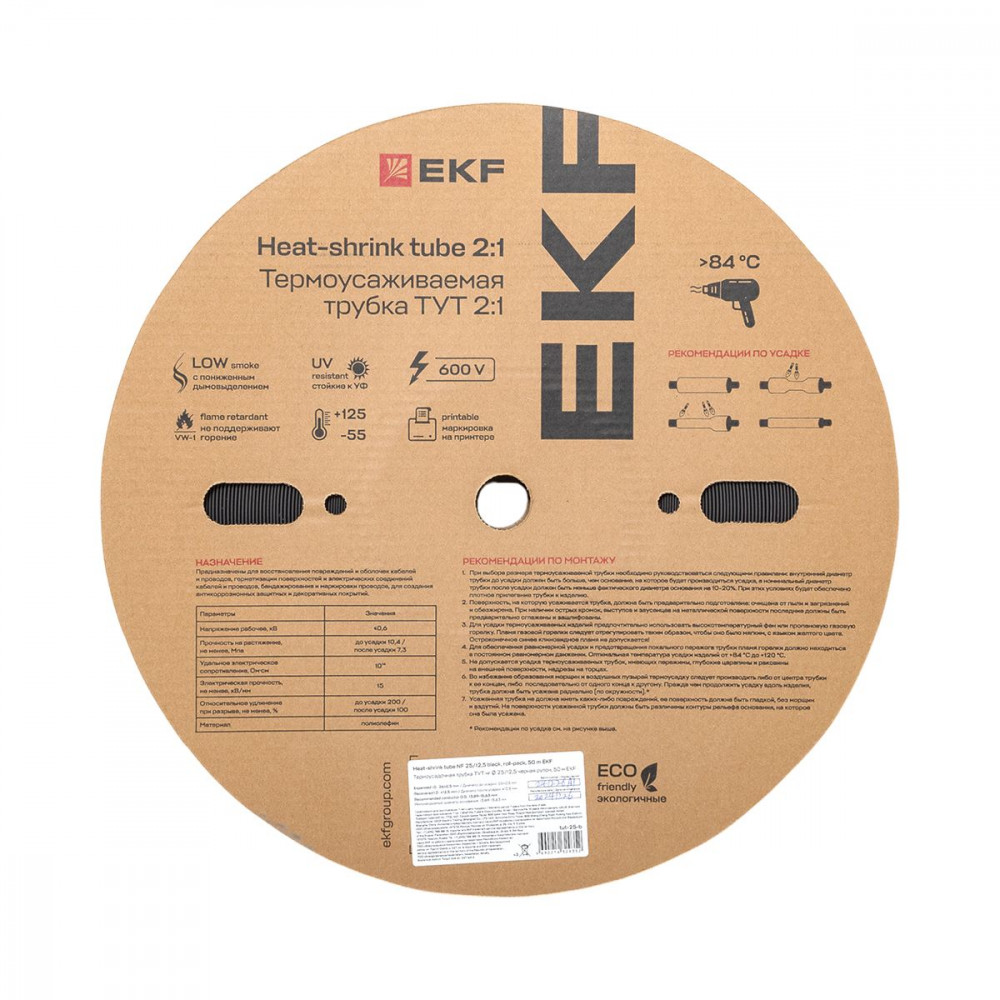 Термоусаживаемая трубка ТУТ нг 25/12,5 черная рулон PROxima tut-25-b, Изделие термоусаживаемое