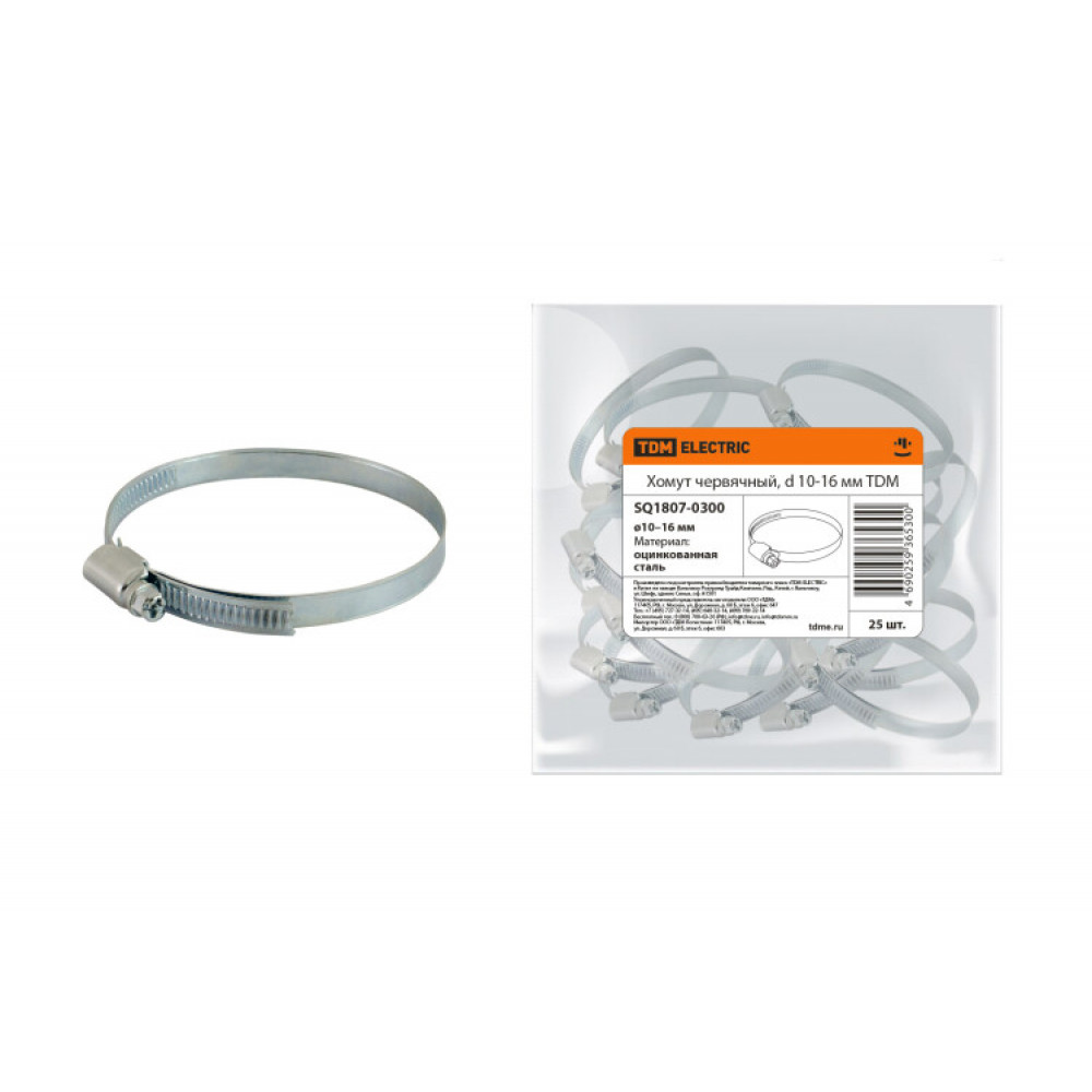Хомут червячный, d 10-16 мм SQ1807-0300, Труба и короб для прокладки кабеля