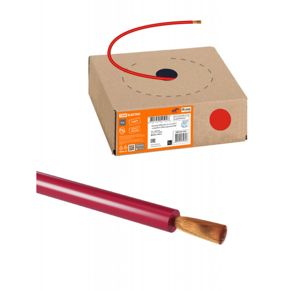 Провод ПуГВнг(А)-LS 1х1,5 ГОСТ в коробке (100м), красный SQ0124-1477, Кабель и провод силовой гибкий