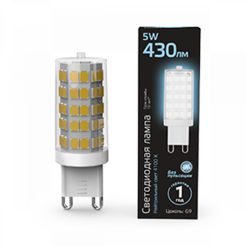 Описание Лампа LED G9 AC185-265V 5W 4100K керамика 1/10/200 107309205