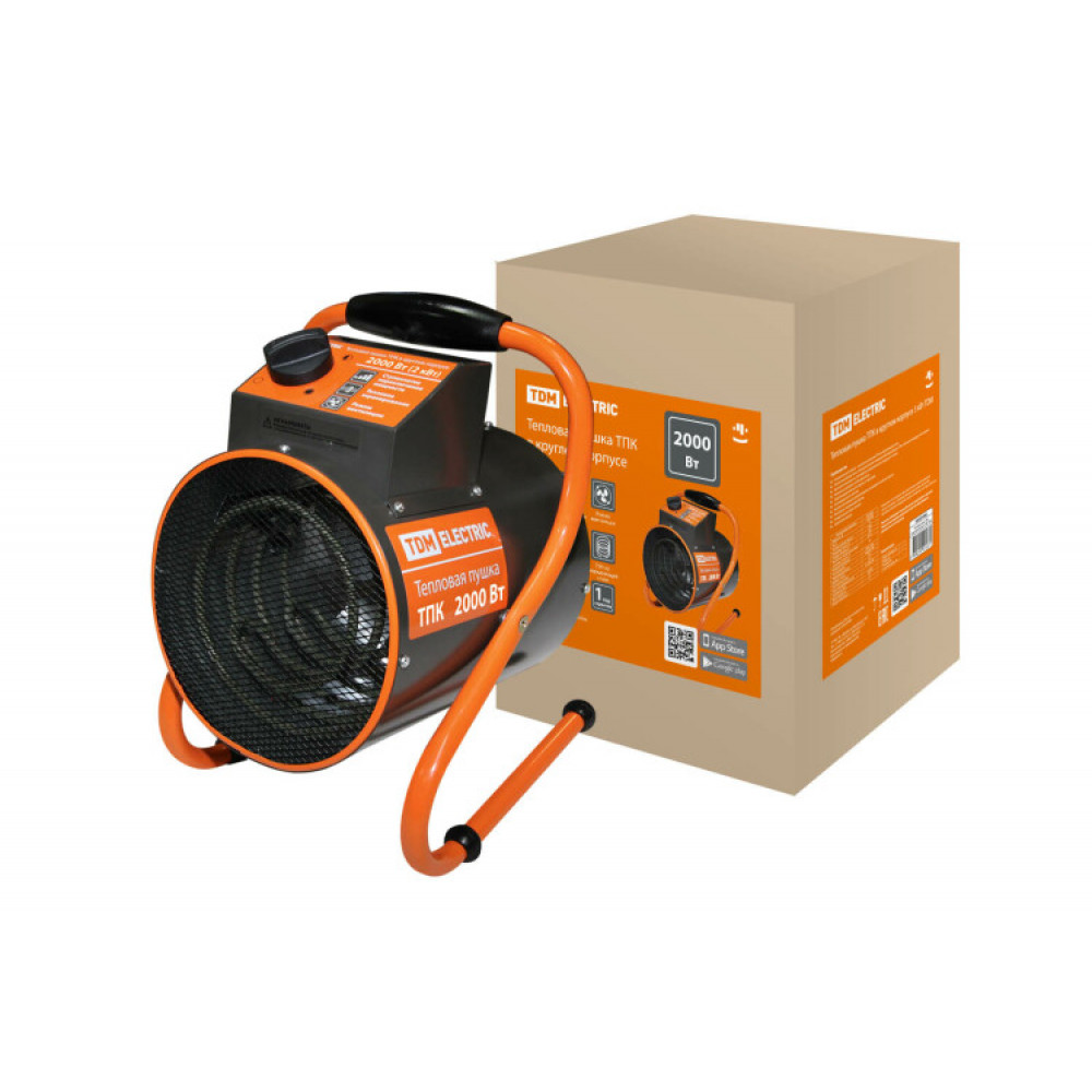 Тепловая пушка ТПК в круглом корпусе 2 кВт SQ2520-0001, Обогреватель электрический