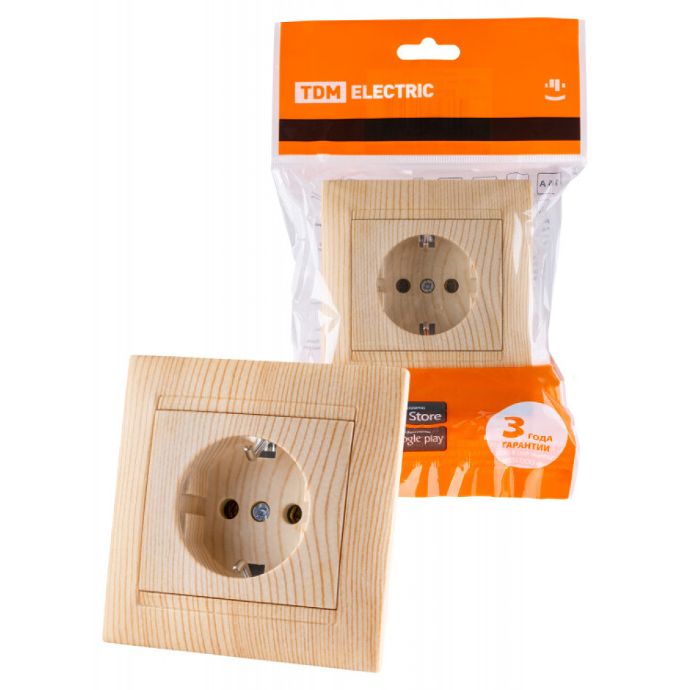 Описание Розетка 2П+З 16А 250В сосна "Лама" SQ1815-0323