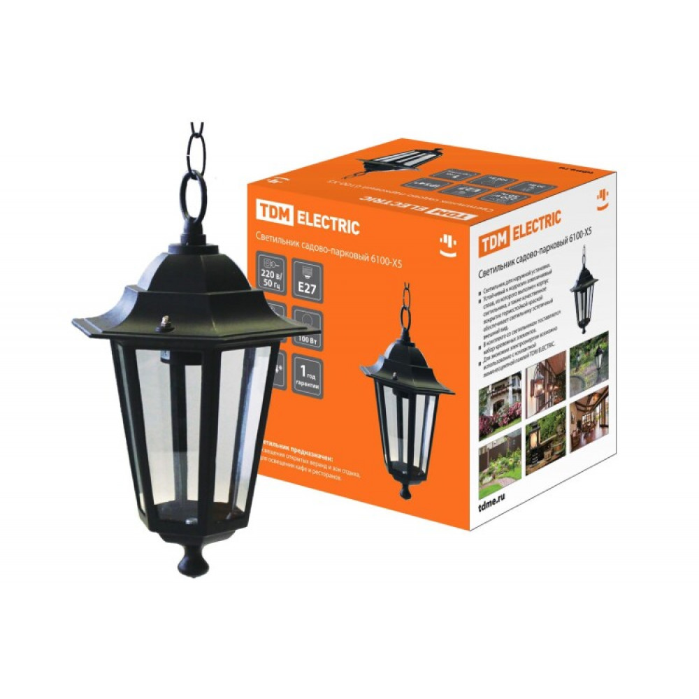 Описание Светильник 6100-05 садово-парковый шестигранник, 100Вт, подвес, черный SQ0330-0010