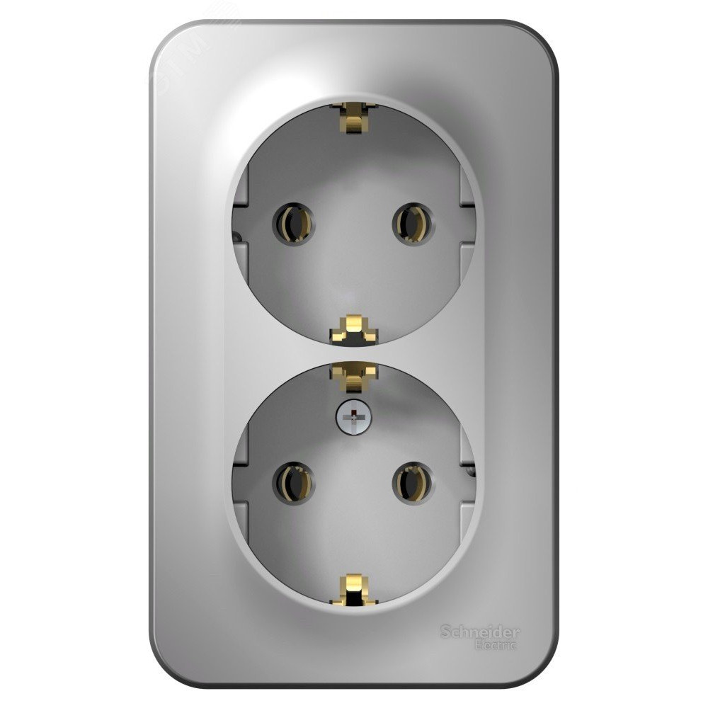 BLANCA О/У РОЗЕТКА двойная с заземлением без шторок, 16А, 250В, АЛЮМИНИЙ C3(2) BLNRA010203, Розетка открытого монтажа
