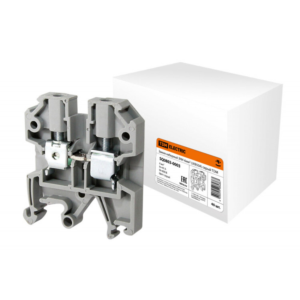 Зажим наборный ЗНИ-6мм2 (JXB50А) серый SQ0803-0003, Клемма на DIN-рейку