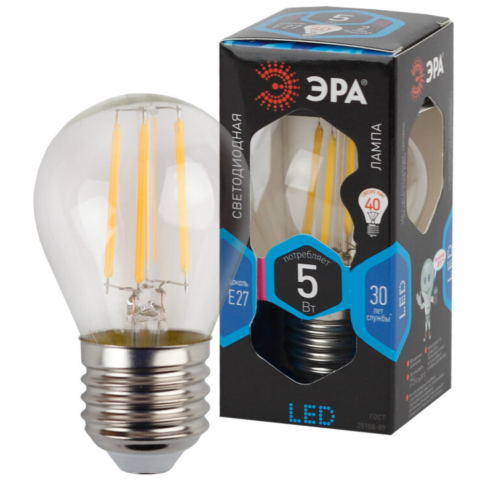 Описание Лампочка светодиодная F-LED P45-5W-840-E27 E27 / Е27 5Вт филамент шар нейтральный белый свет Б0019009