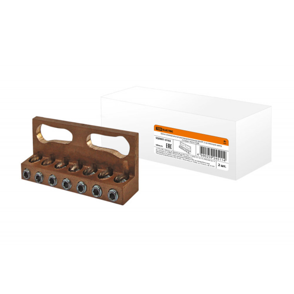Шина универсальная распределительная ШнУР 2 на плоскую шину 7x16мм2 450 А SQ0801-0102, Шина медная