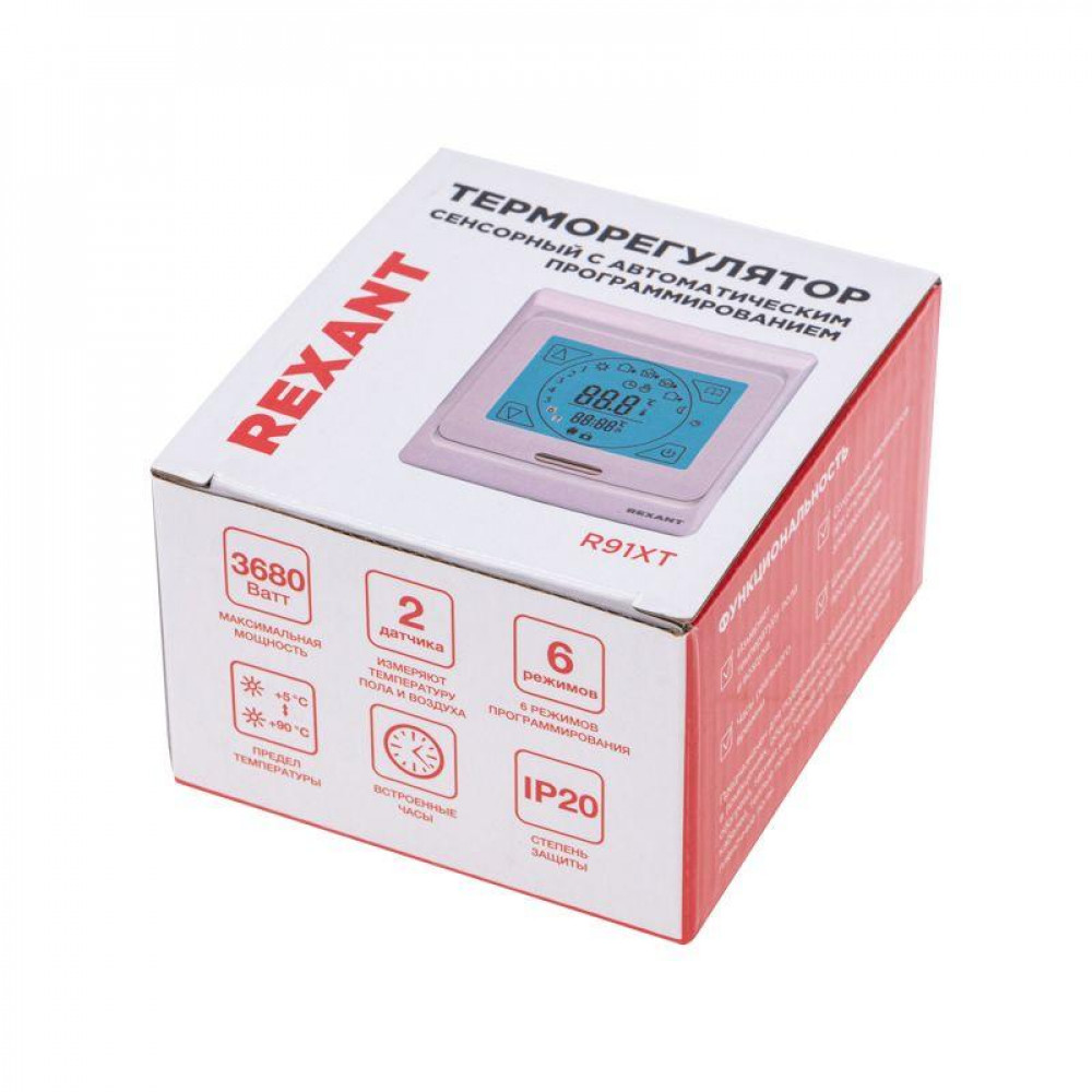 Описание Терморегулятор сенсорный R91XT с автоматическим программированием, 3680 Вт 51-0533