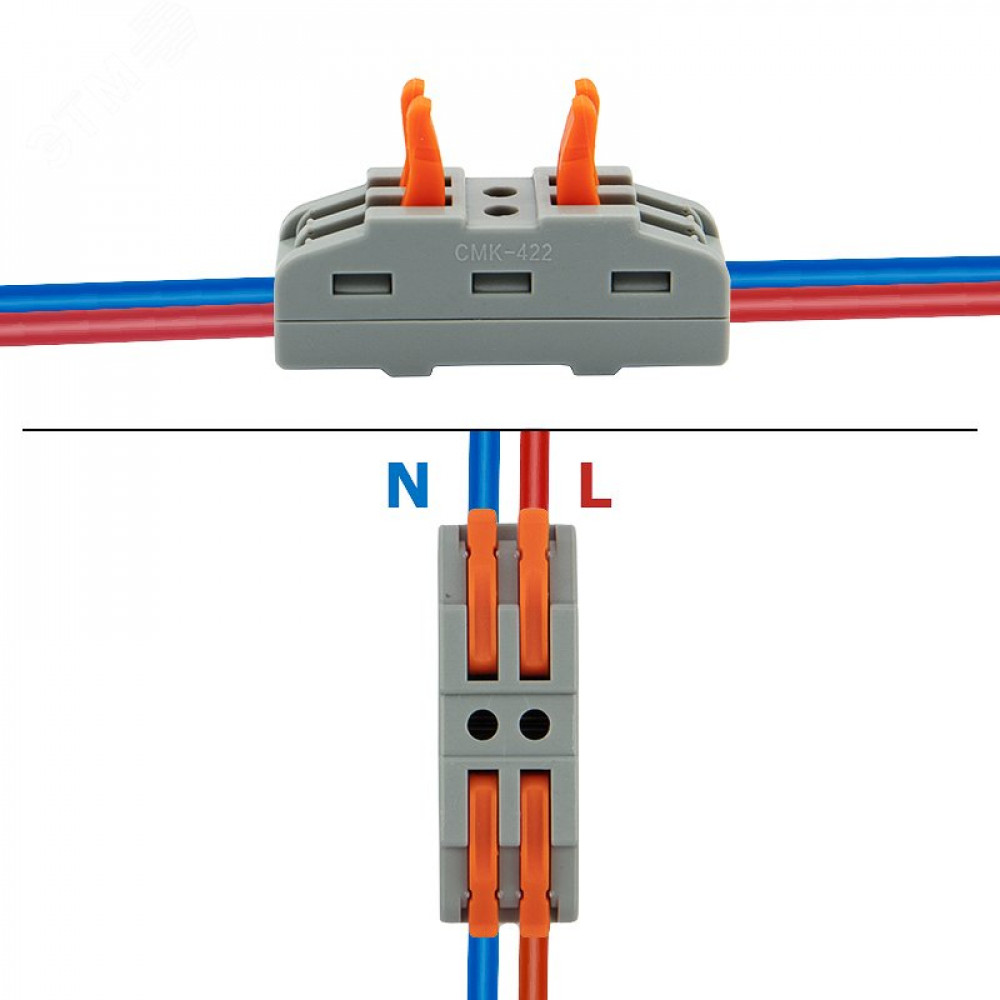 Клемма СМК 222-422 проходная 2 полюса (0,08-4 мм2), серая 07-6263-2, Строительно-монтажная клемма и скрутка