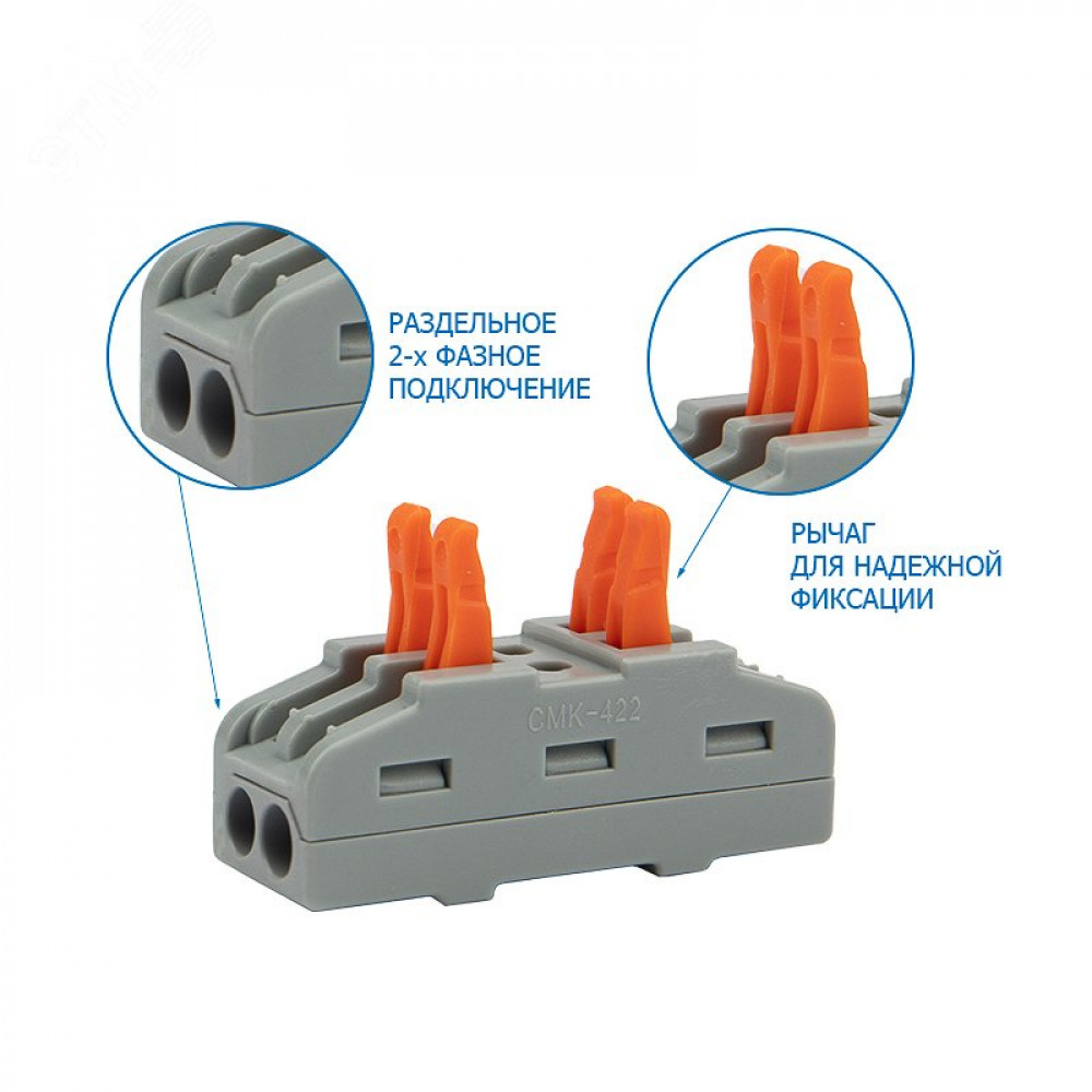 Описание Клемма СМК 222-422 проходная 2 полюса (0,08-4 мм2), серая 07-6263-2