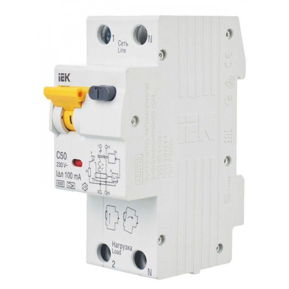 Описание Выключатель автоматический дифференциального тока 2п (1P+N) C 50А 100мА тип A 6кА АВДТ-32 MAD22-5-050-C-100