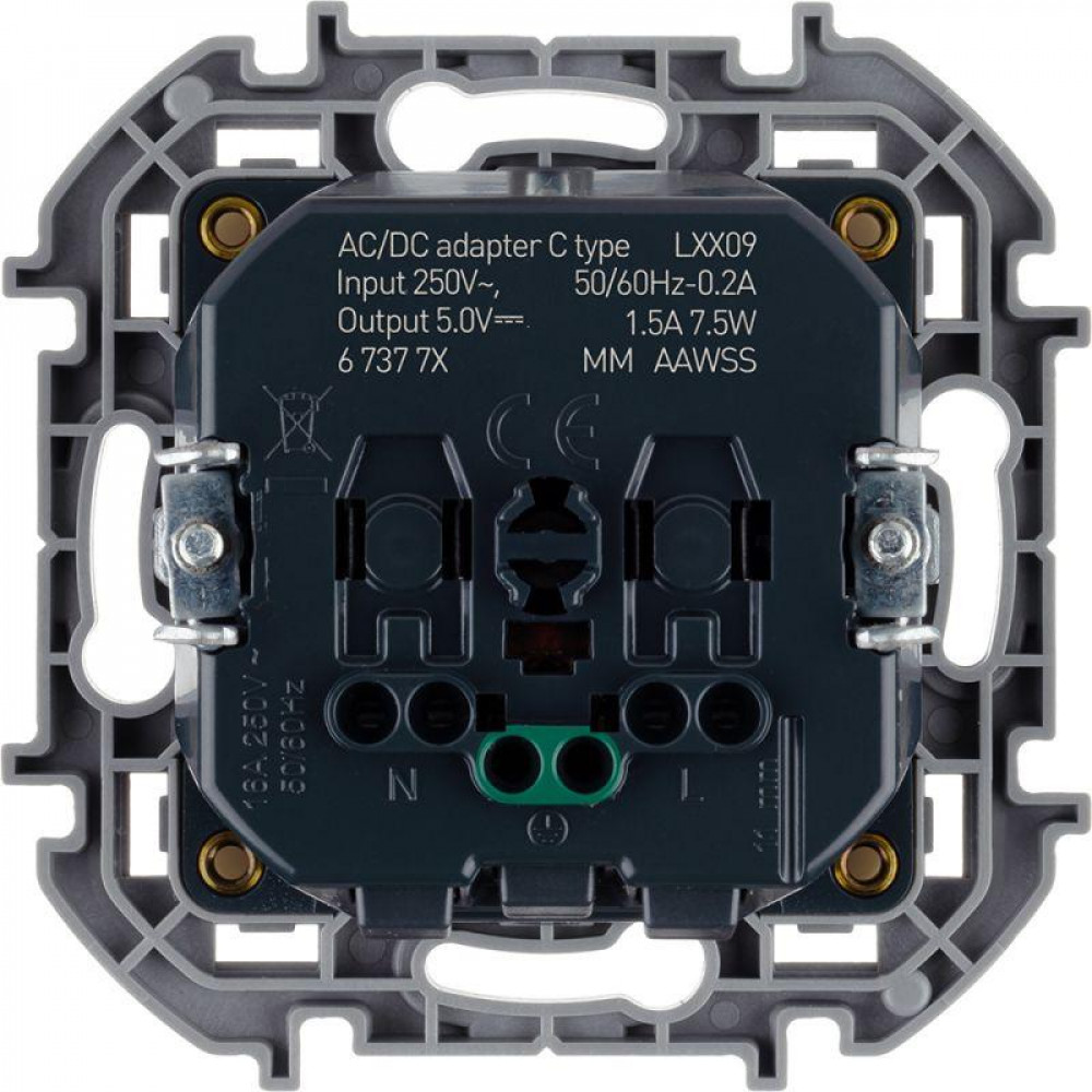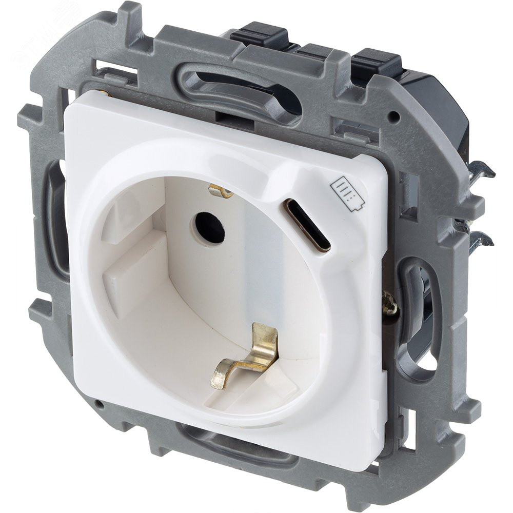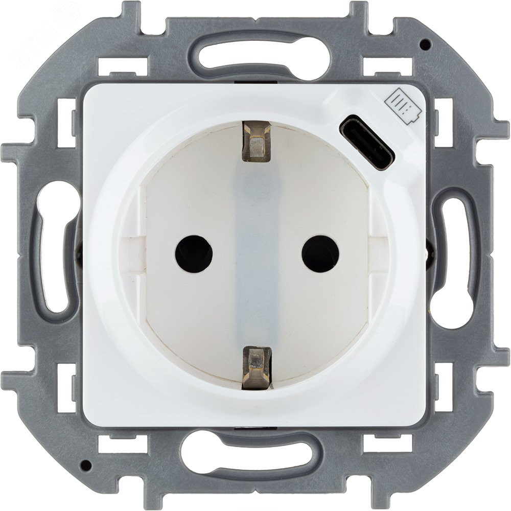 Розетка 1-м СП Inspiria 16А IP20 250В 2P+E немецк. стандарт с заряд. устройством USB тип C 1.5А 5В механизм бел. Leg 673770, Розетка скрытого монтажа