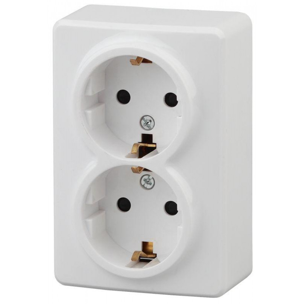 Розетка 2-м ОП Эксперт 11-2205-01 16А IP20 16AX 250В 2х2P+E Schuko бел. Б0020691, Розетка открытого монтажа