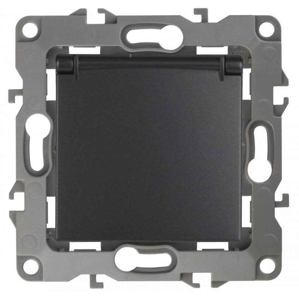 Описание Розетка 1-м СП 2 12-2103-05 16А IP20 16AX 250В 2P+E Schuko защ. шторки с крышкой механизм антрацит Б0014697