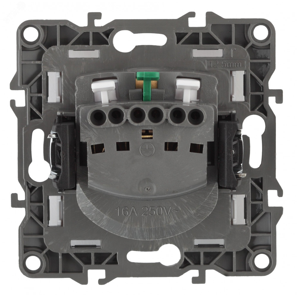 Розетка с заземлением серии Эра 12 скрытой установки механизм цвет белый 12-2101-01. Номинальные характеристики 16А 250В . Сделана из поликарбоната, оснащена автоматическими клеммами для быстрой и надёжной фиксации жил кабеля в механизме. Парные клеммы обеспечивают соединение шлейфом. Монтаж в подрозетник производится и на лапки, и на винты. Рамки приобретаются отдельно. Рамки Эра 12: 1 пост 12-5001-хх, 2 поста 12-5002-хх, 3 поста 12-5003-хх, 4 поста 12-5004-хх, 5 постов 12-5005-хх. Рамки Эра 12 Сатин: 1 пост 12-5101-хх, 2 поста 12-5102-хх, 3 поста 12-5103-хх, 4 поста 12-5104-хх, 5 постов - 12-5105-хх (хх - код цвета: 01-белый, 02-слоновая кость, 03-алюминий, 04-шампань, 05-антрацит, 06-чёрный, 07-ольха(белёный дуб-сатин), 08-вишня, 09-дуб, 10-венге, 11-сосна, 21-жёлтый, 22-оранжевый, 23-красный, 24-охра, 25-бордо, 26-лайм, 27-зелёный, 28-голубой, 29-синий).