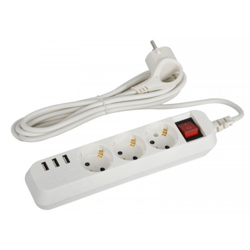 Удлинитель электрический ЭРАU-3es-1,5m-USBс заземлением, с выключателем, 3розетки, 1,5м ПВС 3x0,75мм2. Рассчитан на максимальную мощность 10А/2200Вт. С 3-мя USB гнездами (Type A)для зарядки портативных устройств.Максимальная мощность USB разъемов: 3100 мА.