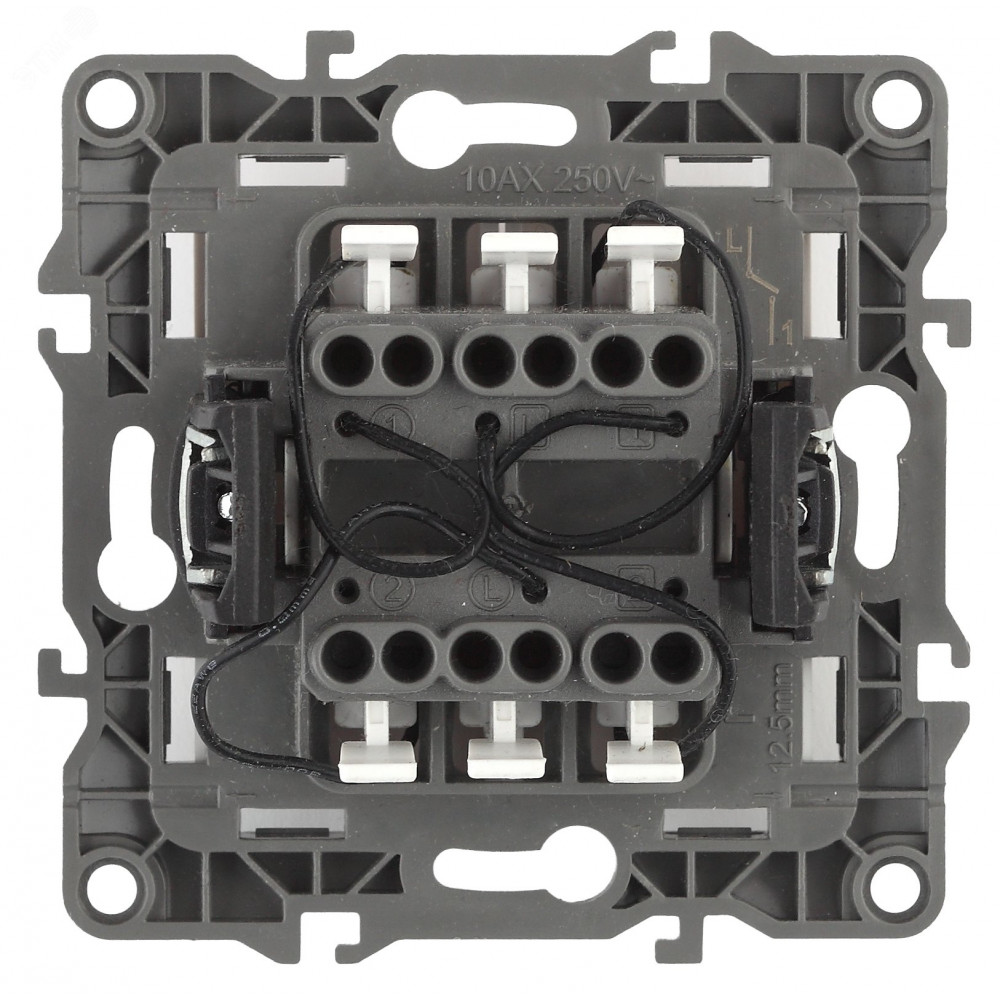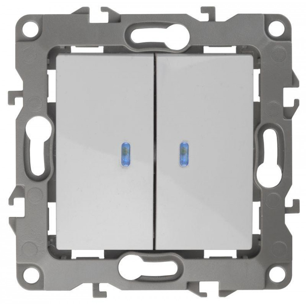 Описание Выключатель 2-кл. СП Эра12 12-1105-01 10А IP20 250В 10AX с подсветкой механизм бел. Б0014657