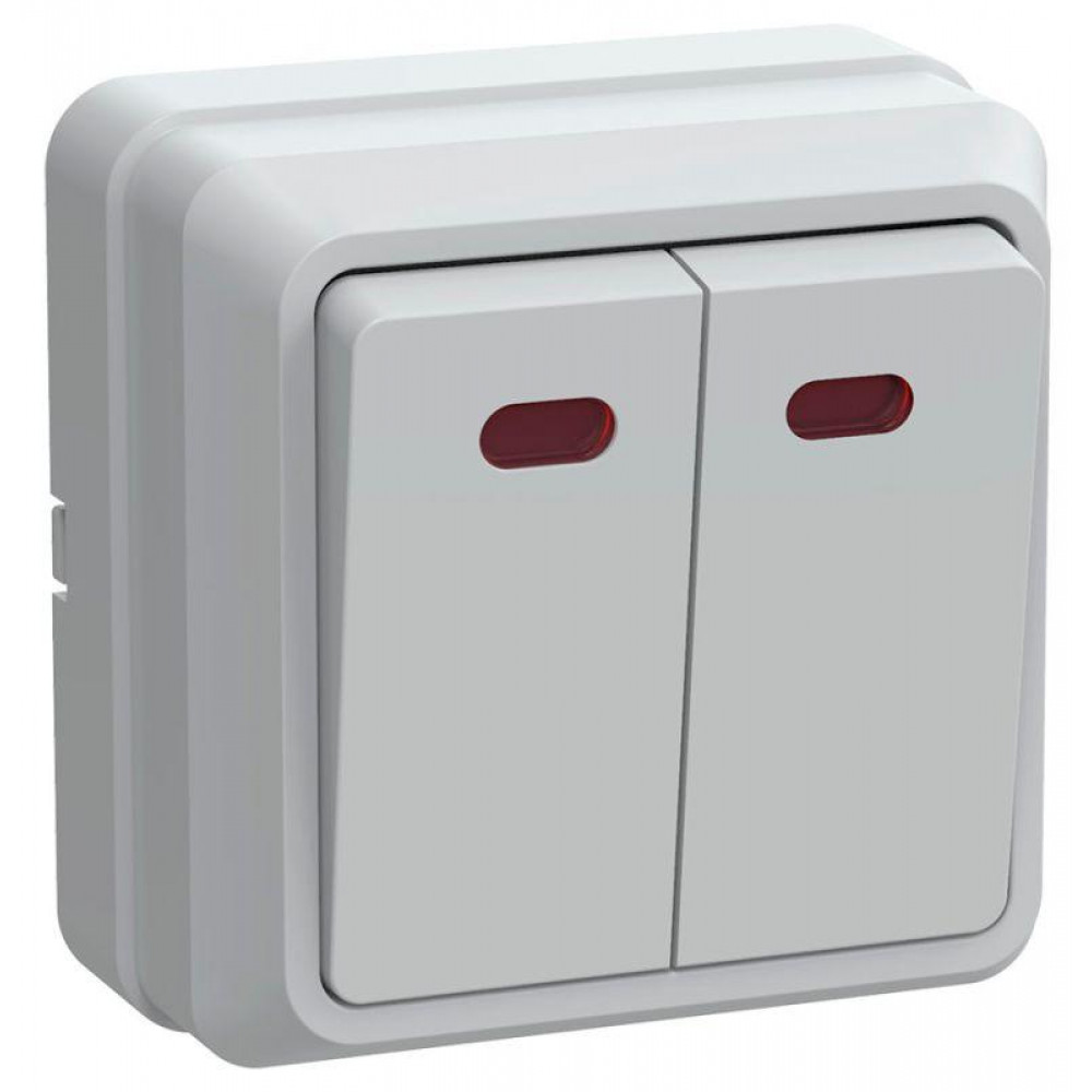 Выключатель 2-кл. ОП Октава 10А IP20 ВС20-2-1-ОБ с индикацией бел. EVO21-K01-10-DC, Выключатель и переключатель открытого монтажа