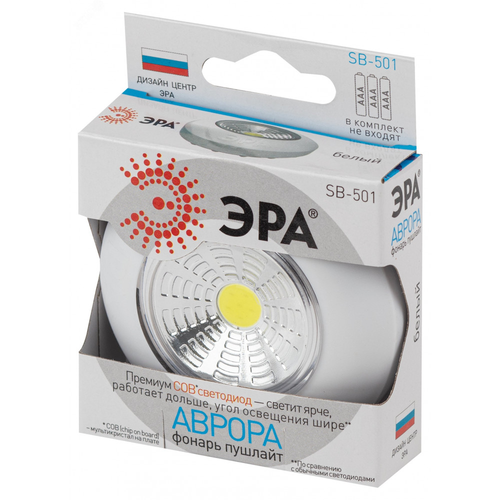 Описание Фонарь SB-501 NEW пушлайт "Аврора" COB 3хAAA бел. Б0031040