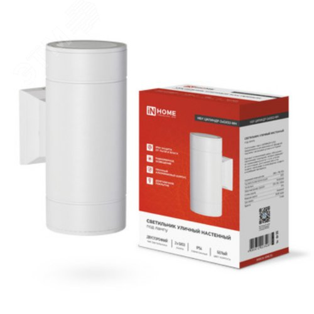 Описание Светильник НБУ ЦИЛИНДР-2xGX53-WH 16Вт IP65 230В уличный настенный двусторонний алюм. под лампу 2хGX53 бел. 4690612023526