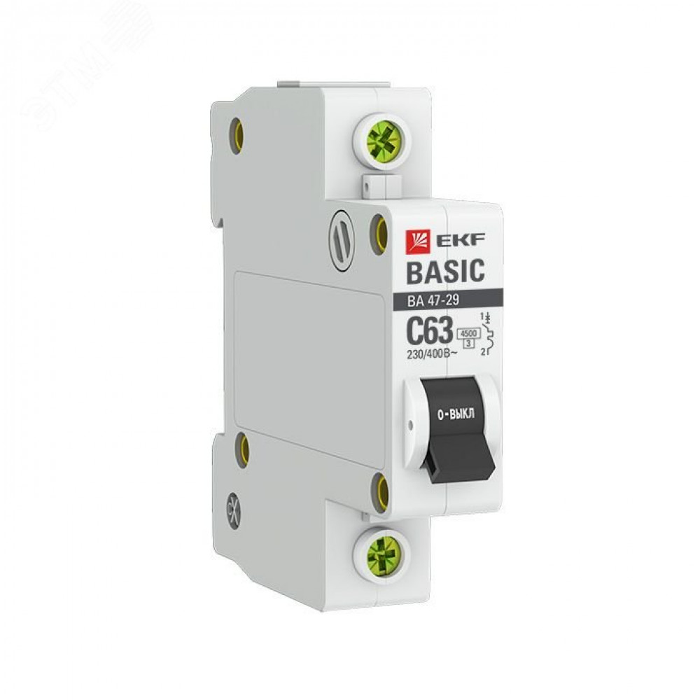 Выключатель автоматический модульный 1п C 6А 4.5кА ВА 47-29 Basic EKF mcb4729-1-06C, Выключатель автоматический модульный