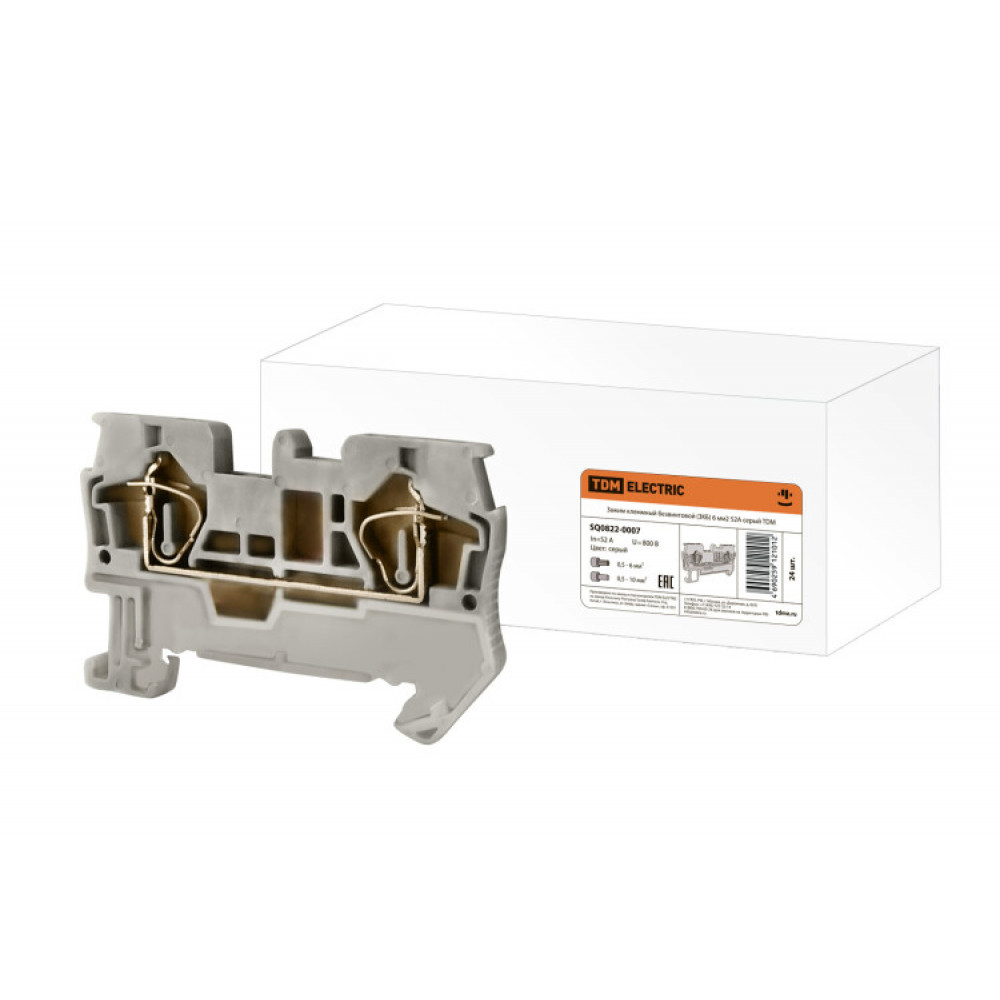 Доставка Зажим клеммный безвинтовой (ЗКБ) 6 мм2 52А серый SQ0822-0007