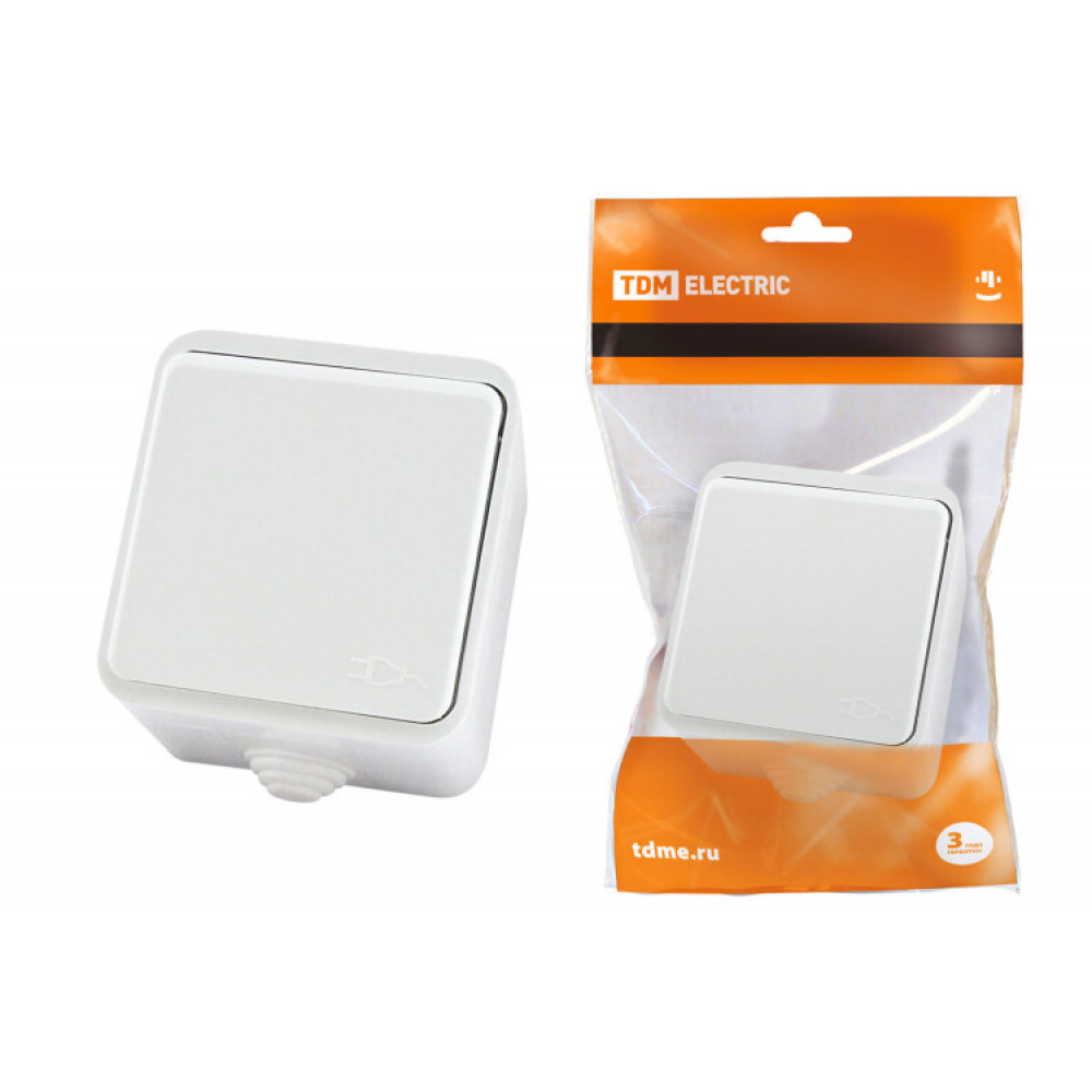 Розетка 2П+З OУ с крышкой IP44 16А белая "Орель" SQ1802-0006, Розетка открытого монтажа