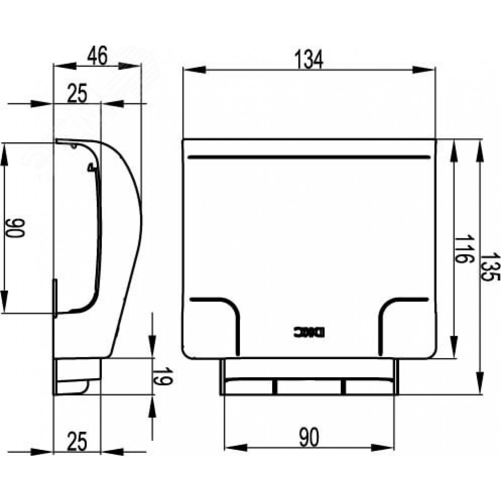 ← Отвод узкий от канала 90х25 мм к коробкам PDD-N60, PDD-N120 и 6-мод.коробке "Brava" 09211