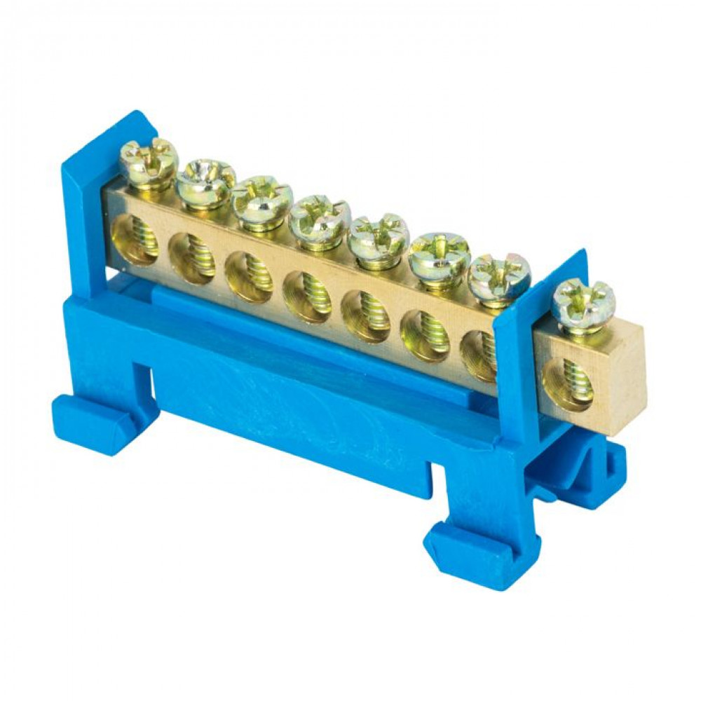 Шина "0" N (6х9мм) 8 отверстий латунь синий изолятор тип "Стойка" на DIN-рейку розничный стикер PROxima sn0-63-8-sb-r, Блок клеммный и нулевая шина