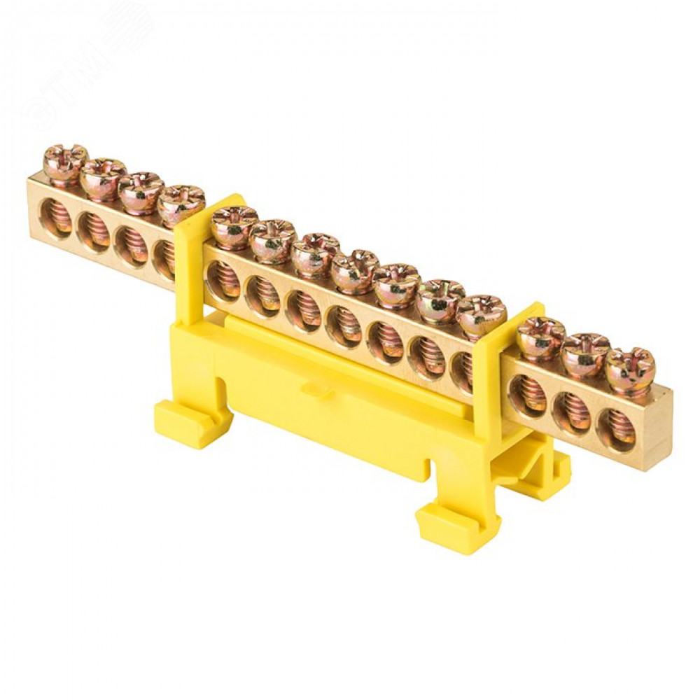 Шина "0" PE (6х9мм) 14 отверстий латунь желтый изолятор тип "Стойка" на DIN-рейку PROxima sn0-63-14-sy, Блок клеммный и нулевая шина
