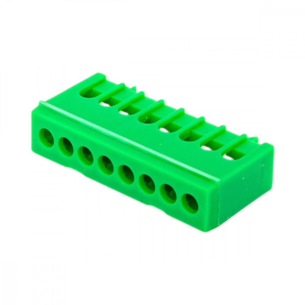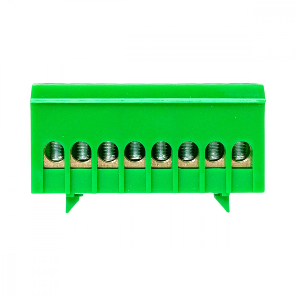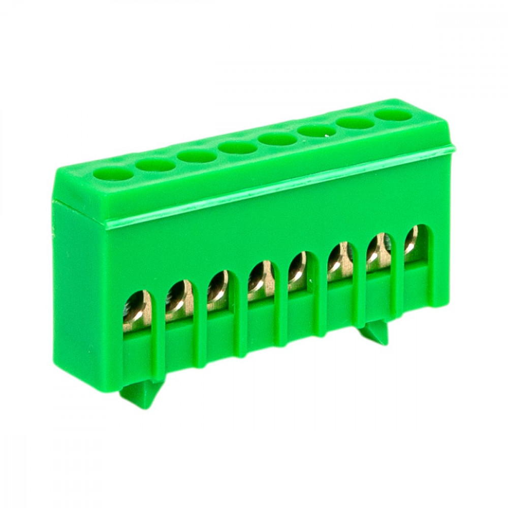 Шина "0" PE (6х9мм) 8 отверстий латунь зеленый изолированный корпус на DIN-рейку розничный стикер PROxima sn0-63-8-ig-r, Блок клеммный и нулевая шина