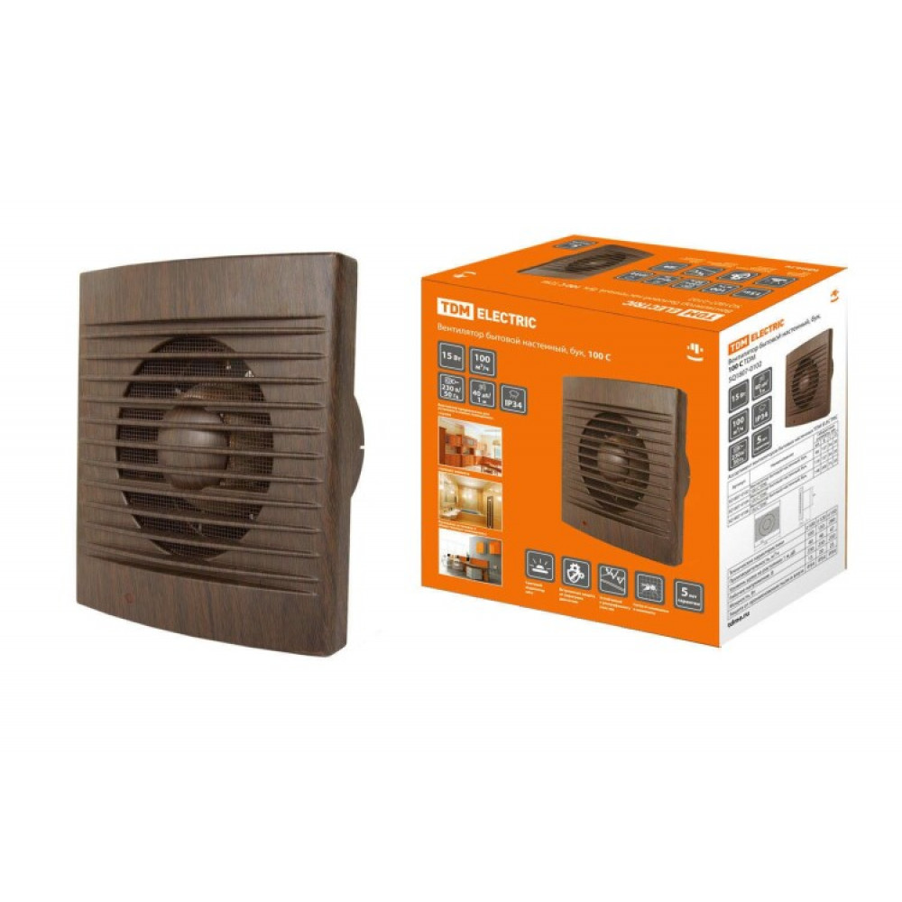 Вентилятор бытовой настенный, 100 С "ЭКО" (бук) SQ1807-0102, Система вентиляционная