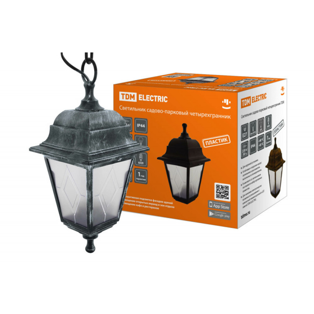 Описание Светильник садово-парковый НСУ 04-60-001 четырехгр., подвес, пластик, расс.пластик, серебро SQ0330-0796